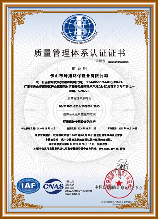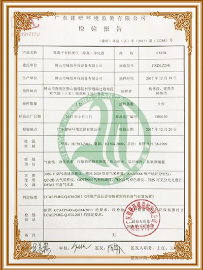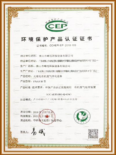 峰旭環(huán)保-十余項設(shè)備認(rèn)證證書,充分證明產(chǎn)品廢氣處理效果